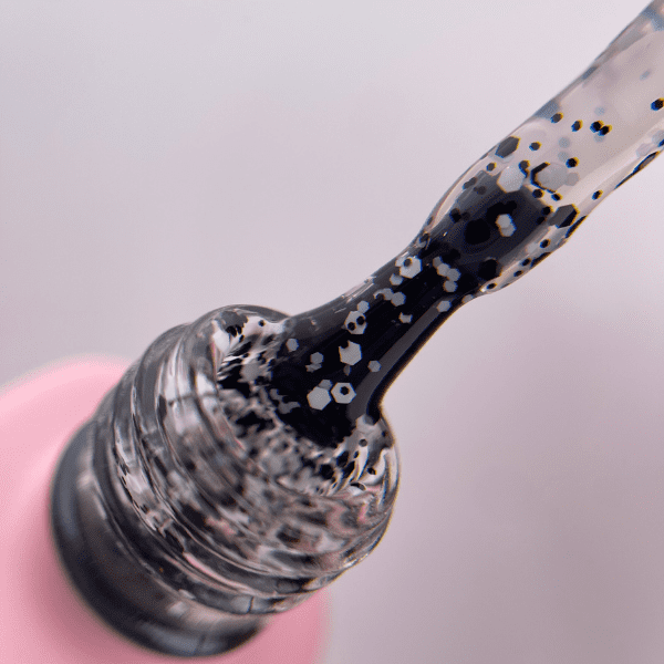 Point Top ONE PRO LINE tops are medium-consistency tops, pleasant to apply, do not flow and easily self-level on the nail plate. They contain a variety of particles that do not stick out and are ideal for any colored gel polishes. POINT BLACK consists of "torn" black particles. POINT MAT - "torn" black particles with a matte finish. POINT WHITE contains small white particles. POINT BLACK & WHITE combines black and white crumbs of different shapes.