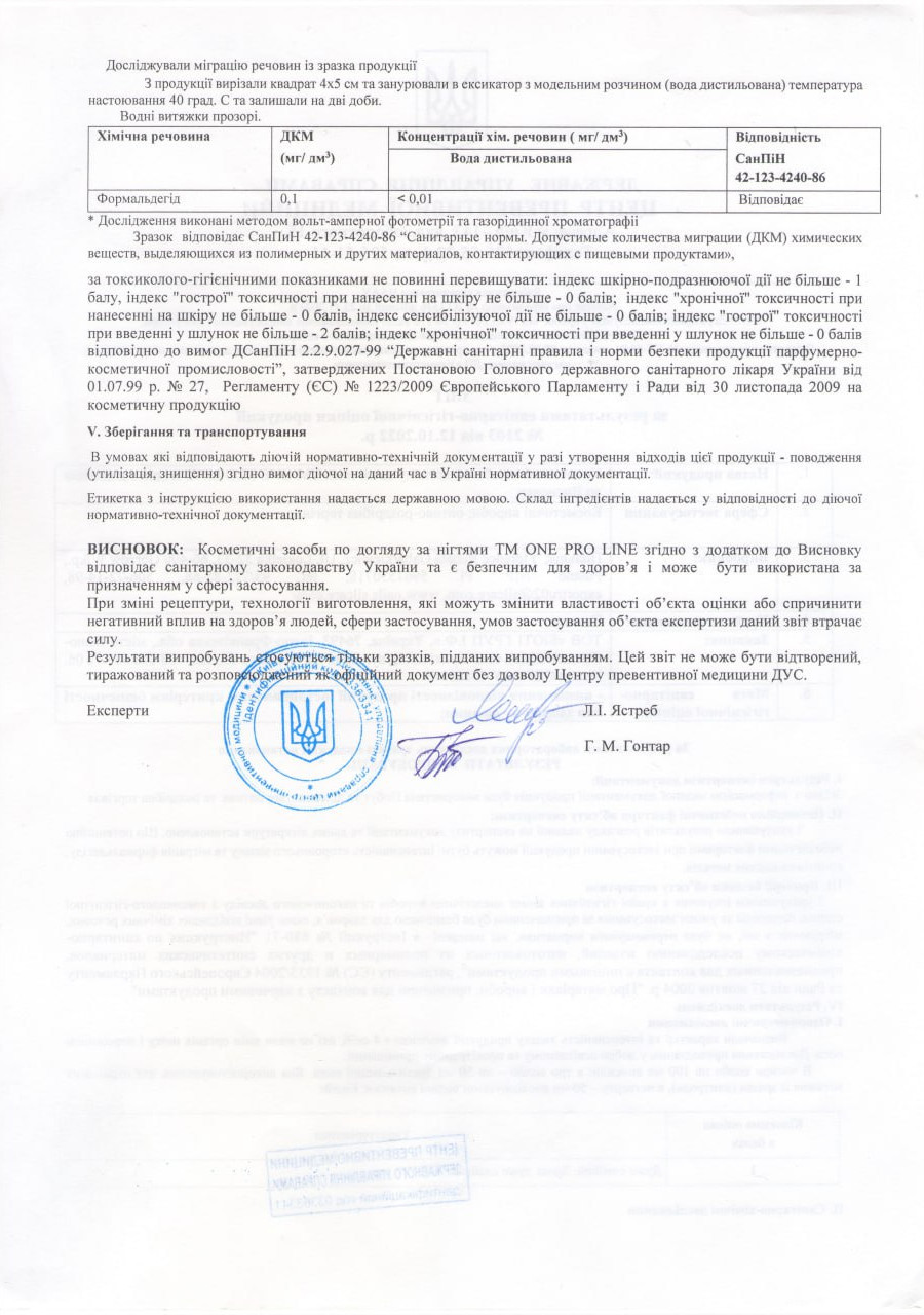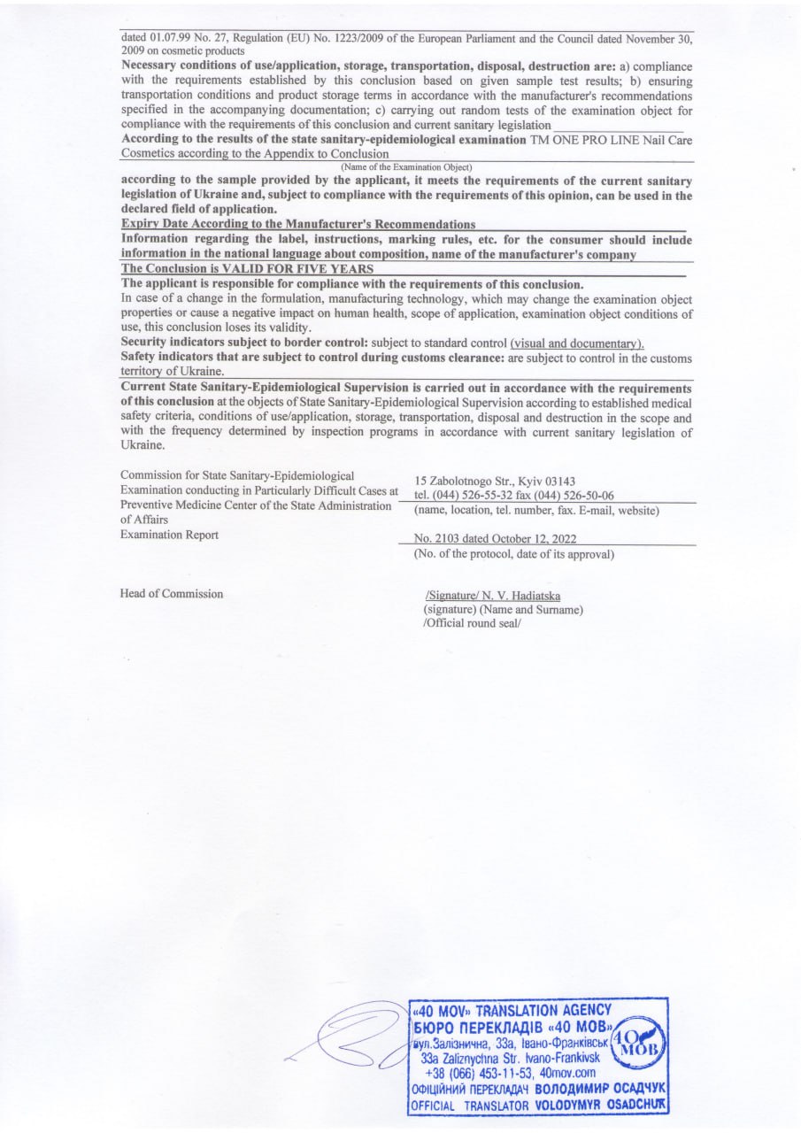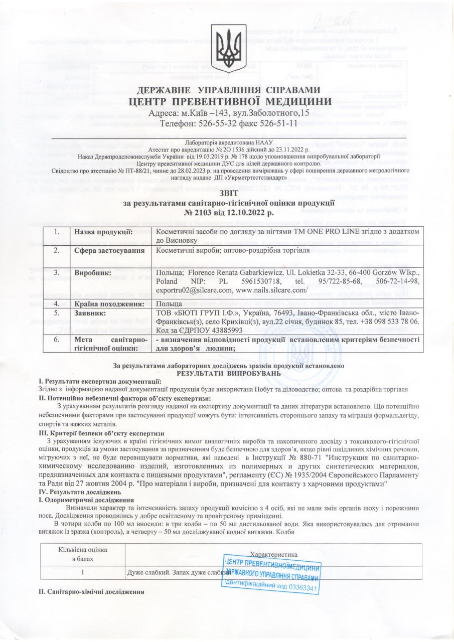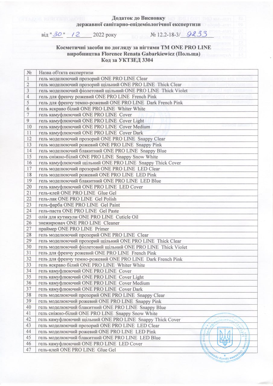 The MSDS passport is provided at the request of the distributor of the ONE PRO LINE trademark