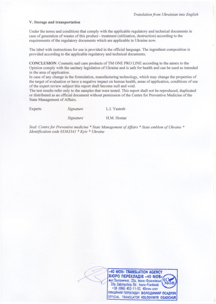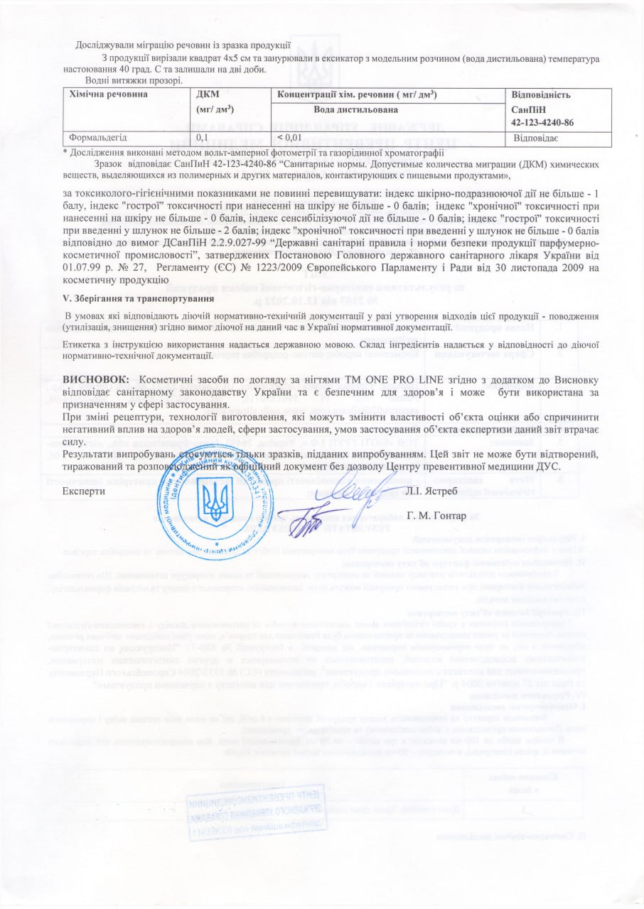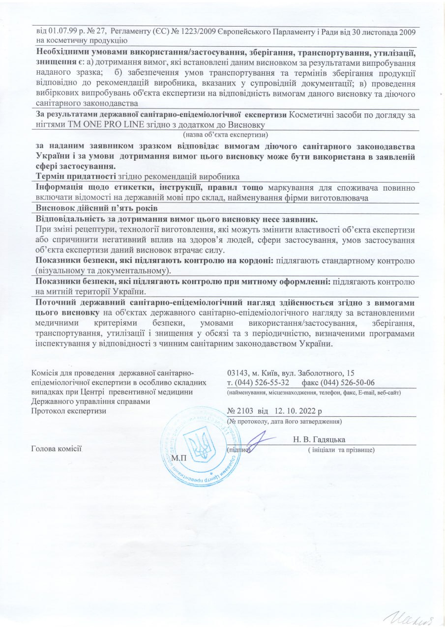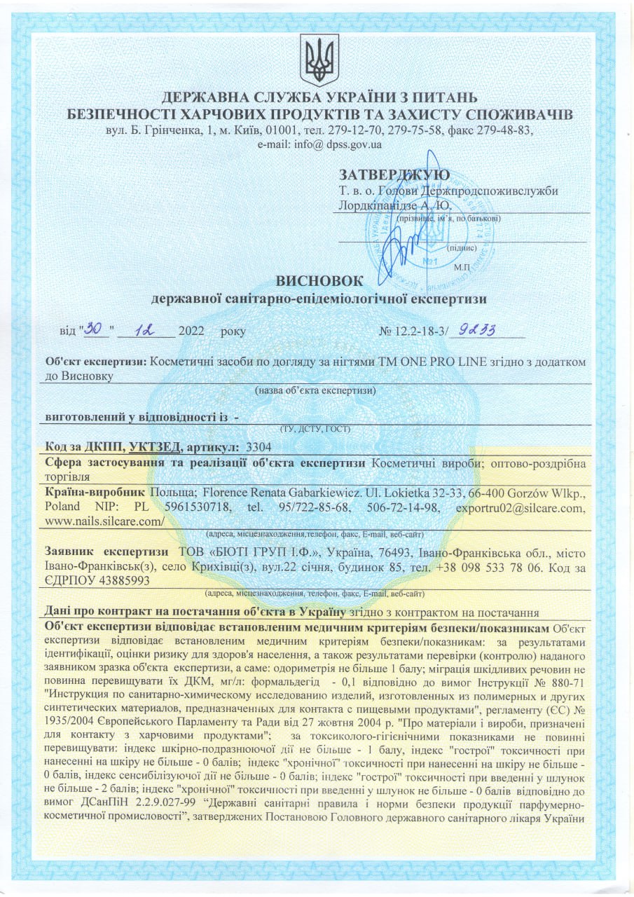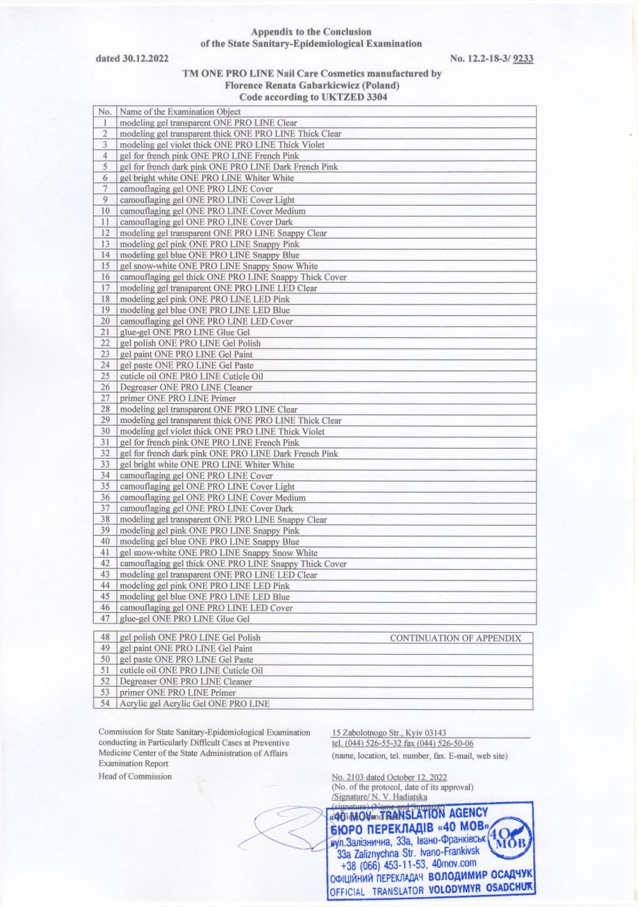 The MSDS passport is provided at the request of the distributor of the ONE PRO LINE trademark