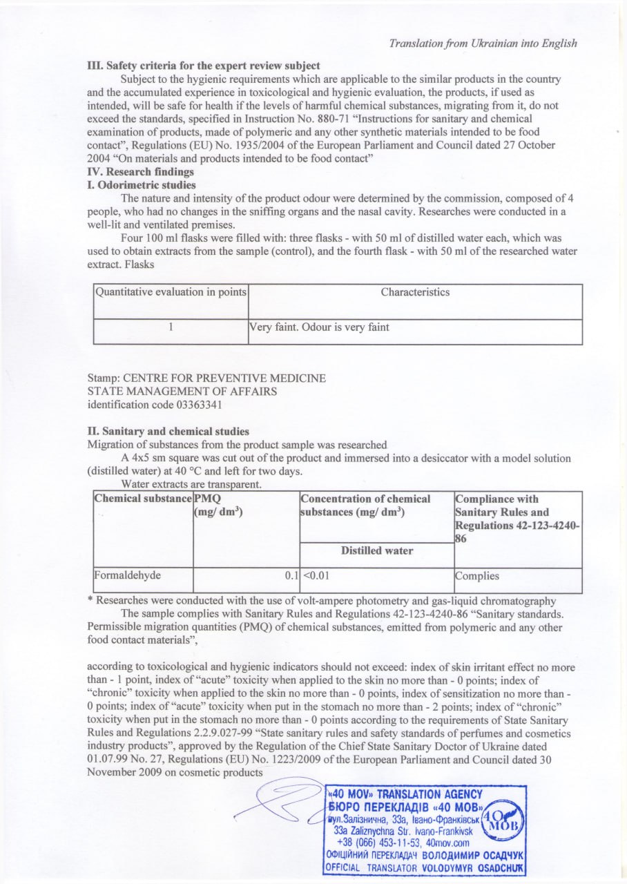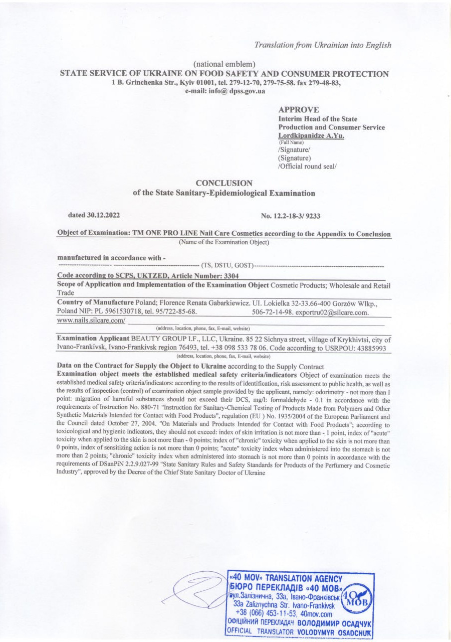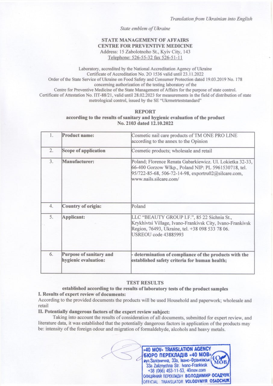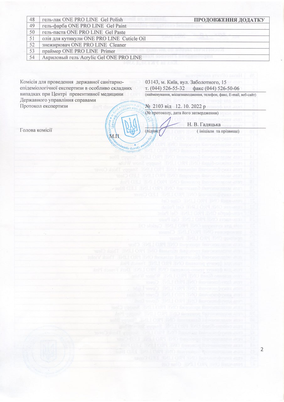 The MSDS passport is provided at the request of the distributor of the ONE PRO LINE trademark